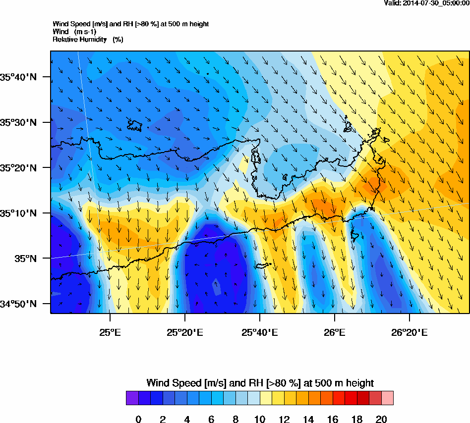 Graph 2: arw012.png - Wind Speed [m/s] and RH [>80%] at 500 m height