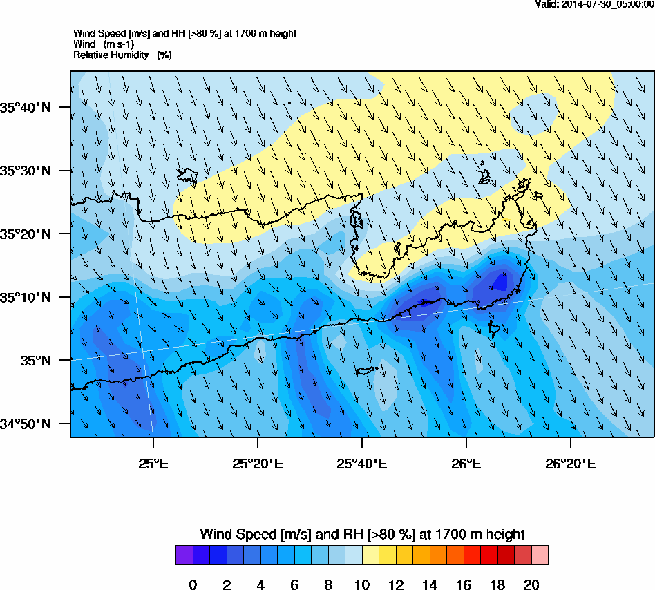 Graph 5: arw015.png - Wind Speed [m/s] and RH [>80%] at 1700 m height