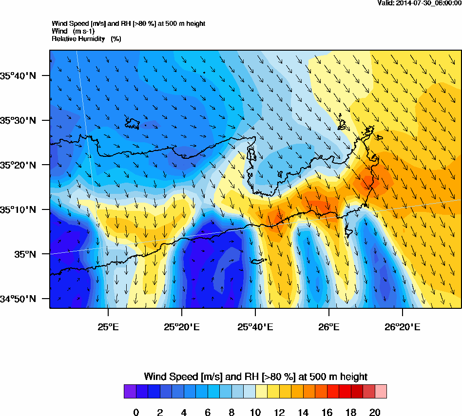 Graph 2: arw017.png - Wind Speed [m/s] and RH [>80%] at 500 m height