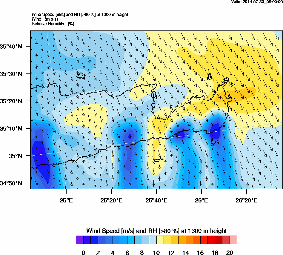 Graph 4: arw019.png - Wind Speed [m/s] and RH [>80%] at 1300 m height