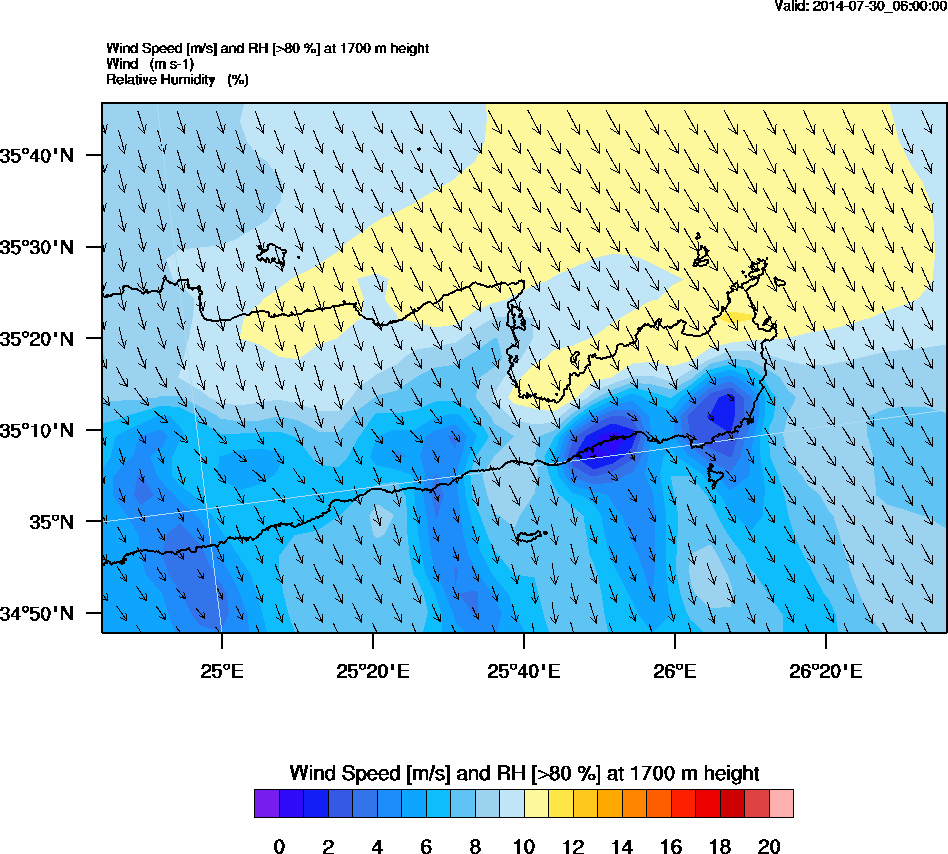 Graph 5: arw020.png - Wind Speed [m/s] and RH [>80%] at 1700 m height