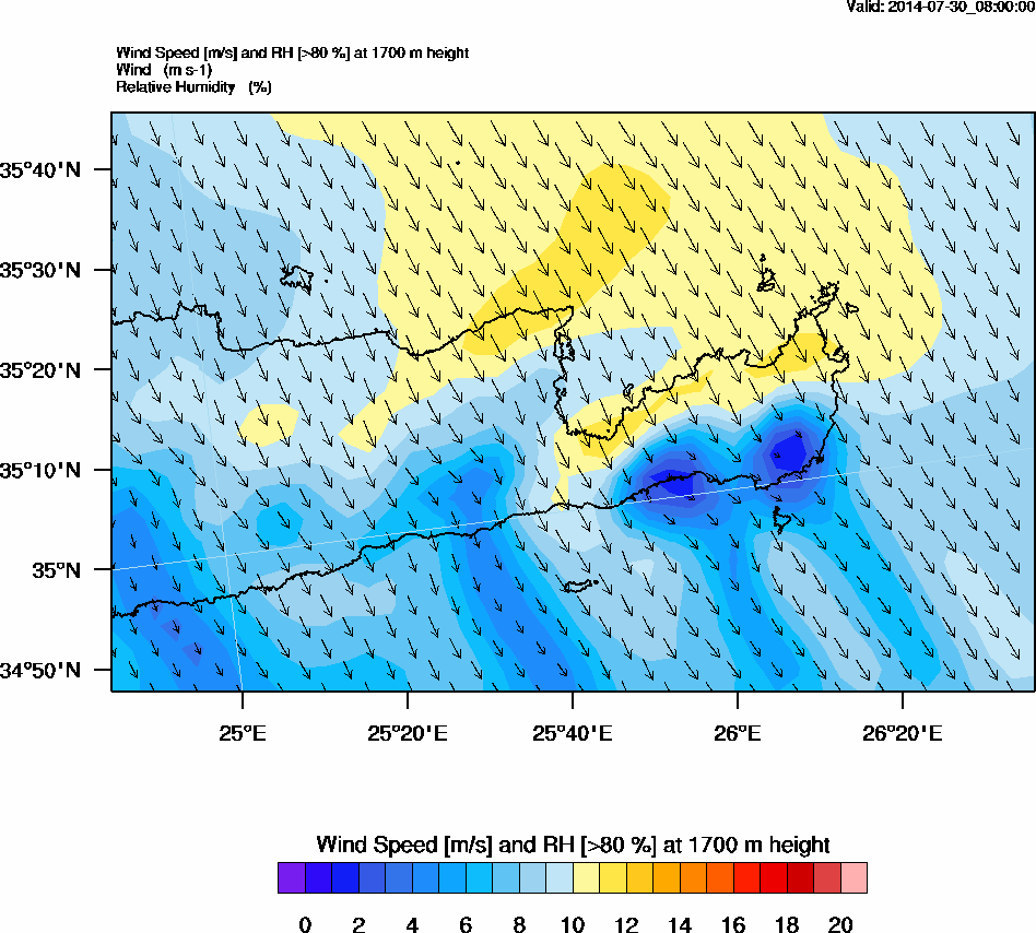 Graph 5: arw030.png - Wind Speed [m/s] and RH [>80%] at 1700 m height