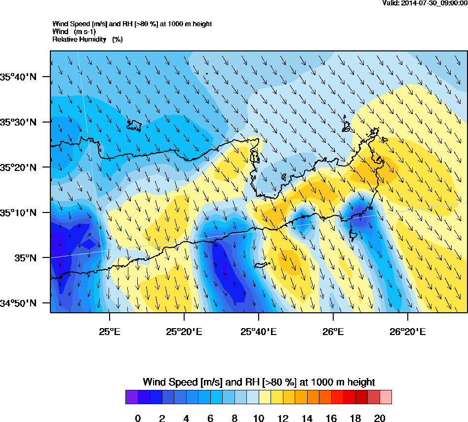 Graph 3: arw033.png - Wind Speed [m/s] and RH [>80%] at 1000 m height