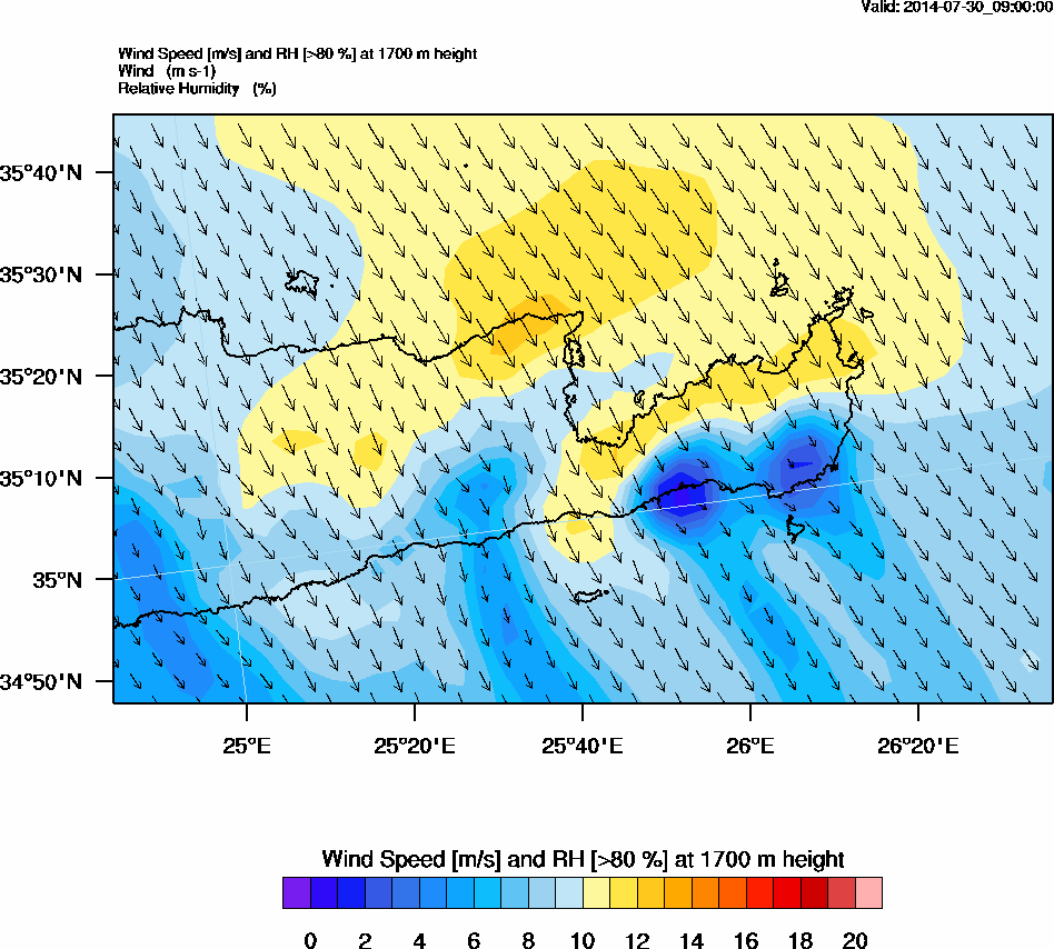 Graph 5: arw035.png - Wind Speed [m/s] and RH [>80%] at 1700 m height