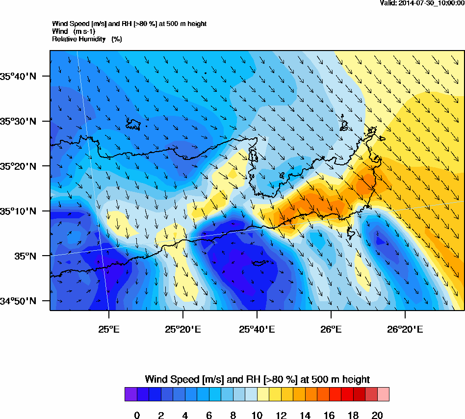 Graph 2: arw037.png - Wind Speed [m/s] and RH [>80%] at 500 m height