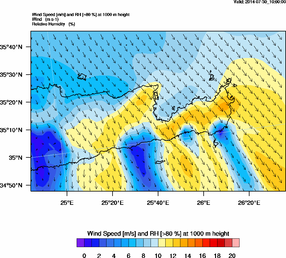Graph 3: arw038.png - Wind Speed [m/s] and RH [>80%] at 1000 m height