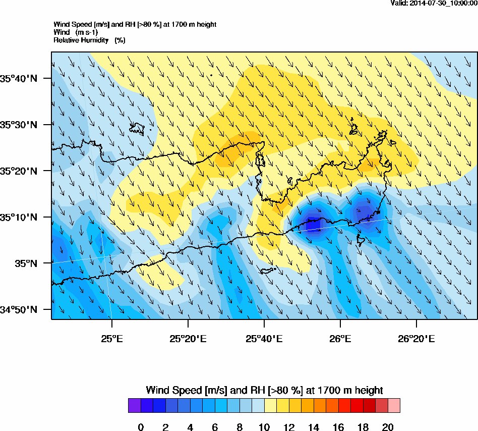 Graph 5: arw040.png - Wind Speed [m/s] and RH [>80%] at 1700 m height