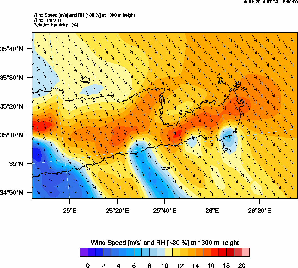 Graph 4: arw069.png - Wind Speed [m/s] and RH [>80%] at 1300 m height