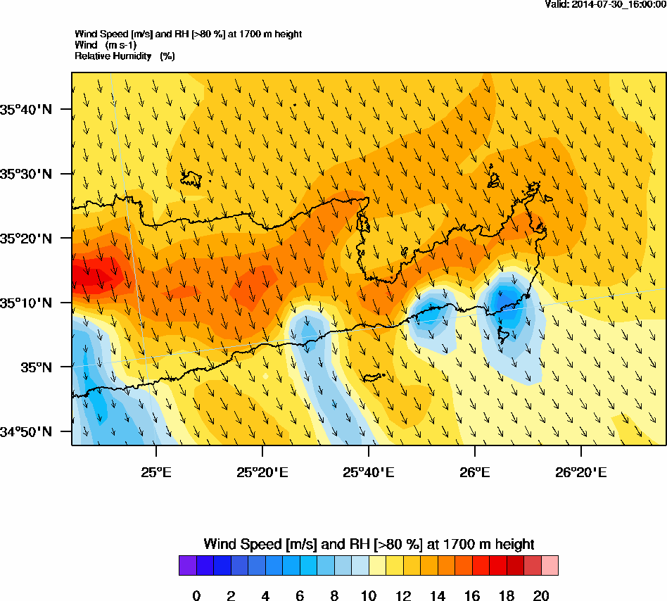 Graph 5: arw070.png - Wind Speed [m/s] and RH [>80%] at 1700 m height