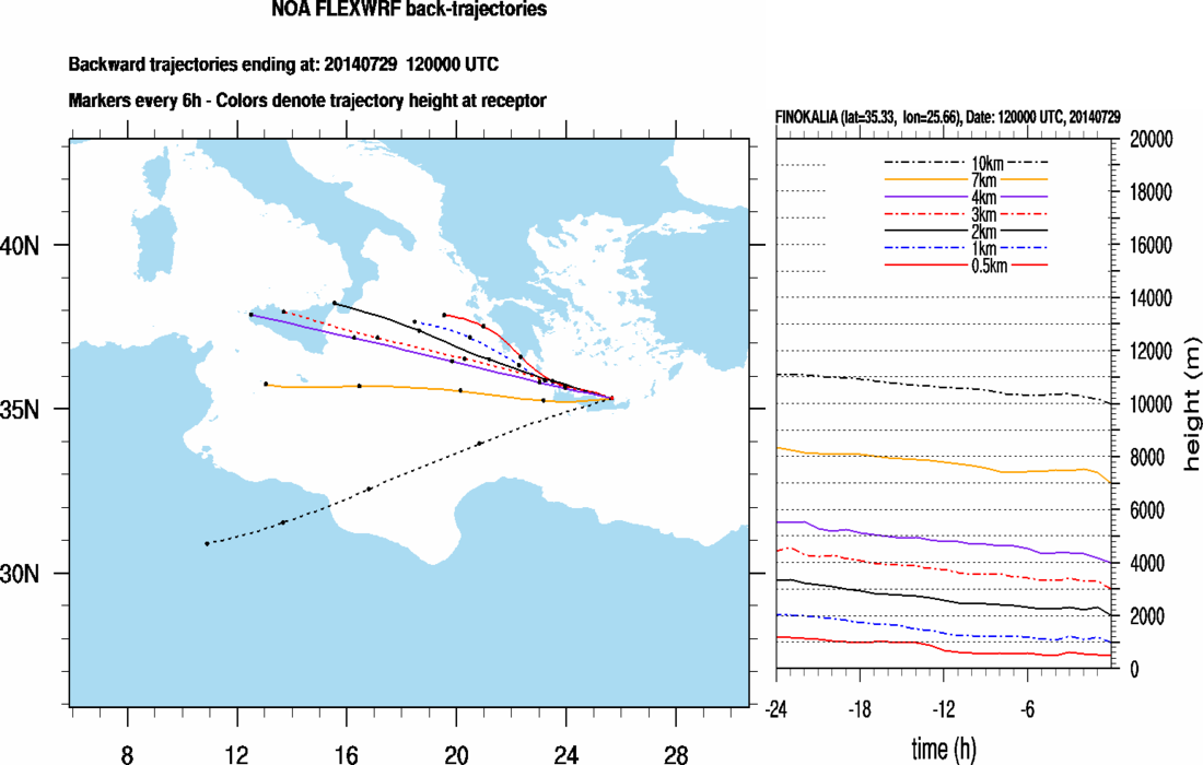 Graph 1: Backtrajectories forecast for Finokalia (+ 24 h)