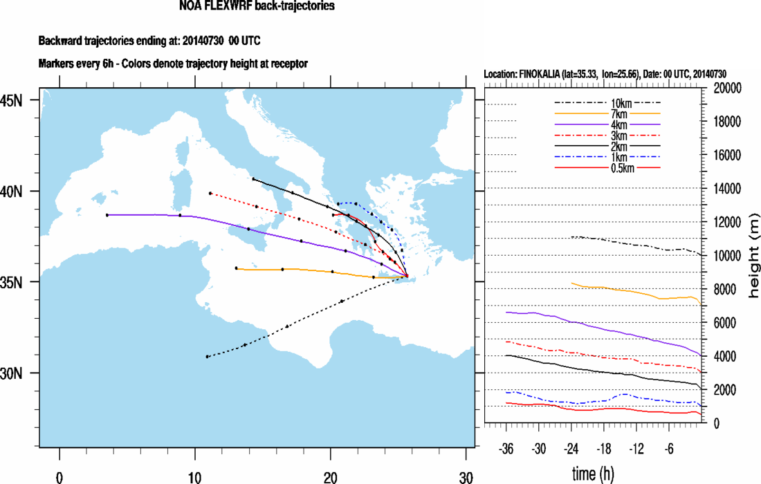 Graph 2: Backtrajectories forecast for Finokalia (+ 36 h)