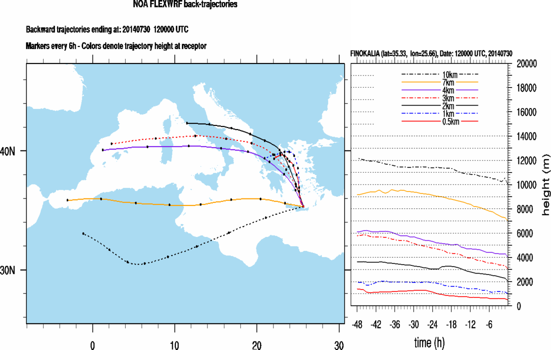 Graph 3: Backtrajectories forecast for Finokalia (+ 48 h)