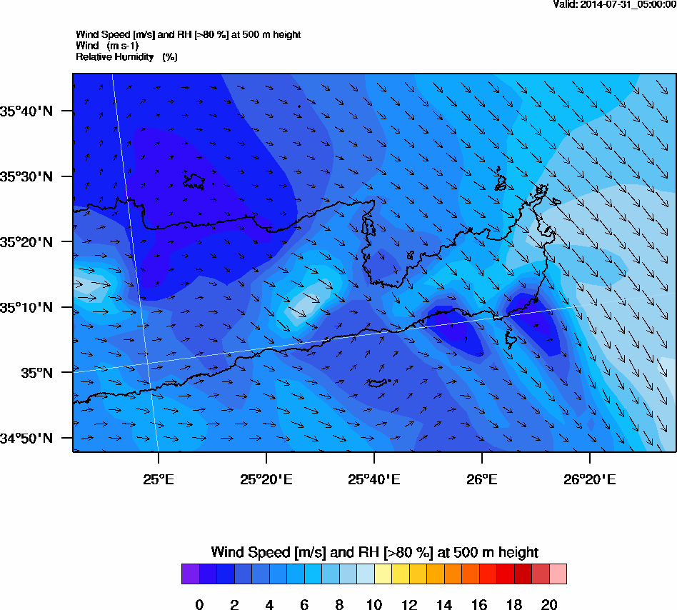 Graph 2: arw012.png - Wind Speed [m/s] and RH [>80%] at 500 m height