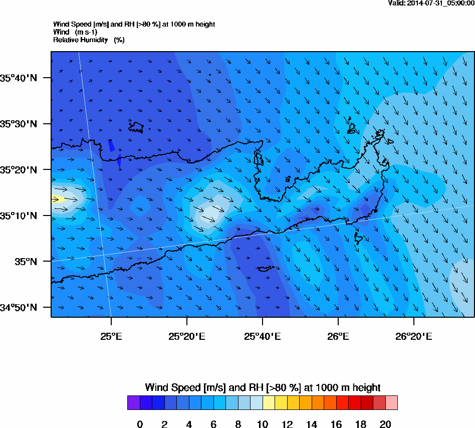 Graph 3: arw013.png - Wind Speed [m/s] and RH [>80%] at 1000 m height