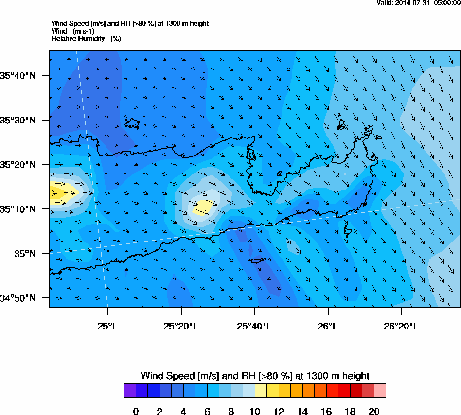 Graph 4: arw014.png - Wind Speed [m/s] and RH [>80%] at 1300 m height