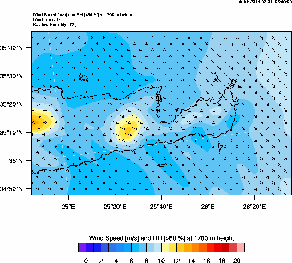 Graph 5: arw015.png - Wind Speed [m/s] and RH [>80%] at 1700 m height