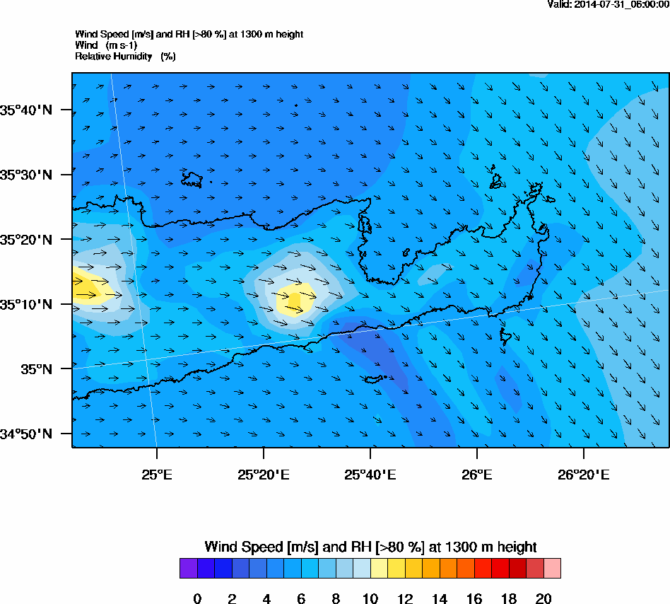 Graph 4: arw019.png - Wind Speed [m/s] and RH [>80%] at 1300 m height