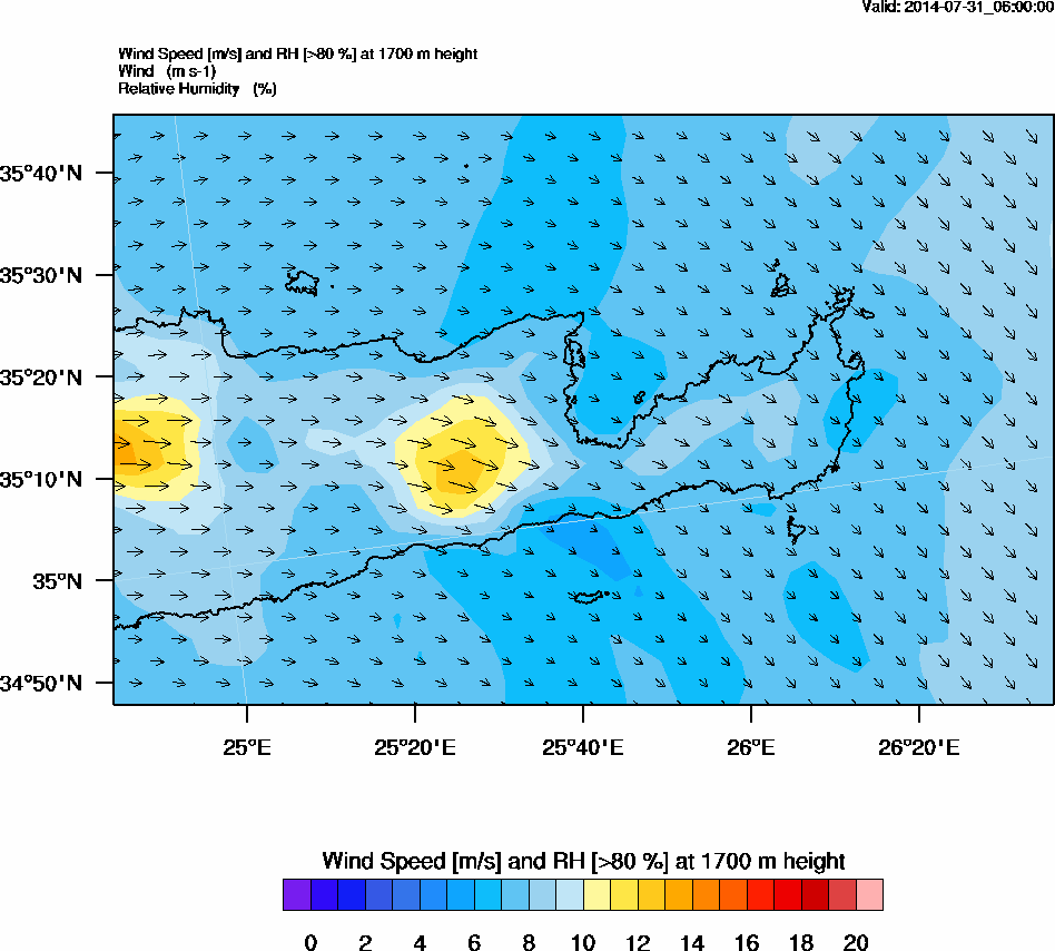 Graph 5: arw020.png - Wind Speed [m/s] and RH [>80%] at 1700 m height