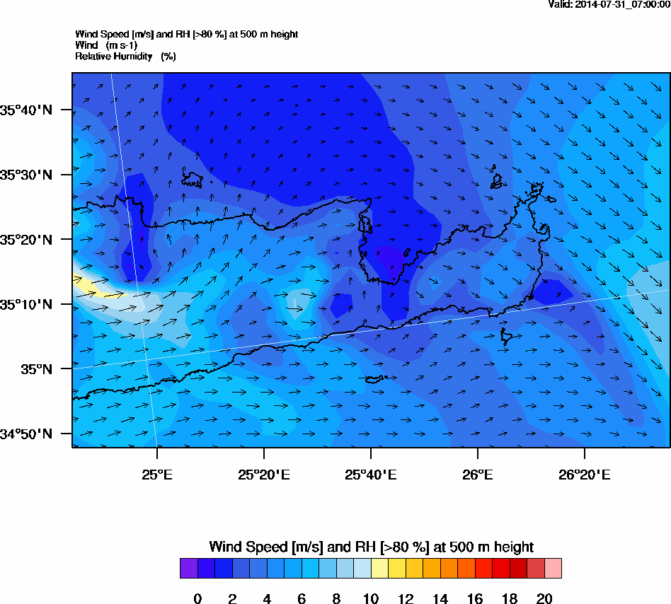 Graph 2: arw022.png - Wind Speed [m/s] and RH [>80%] at 500 m height