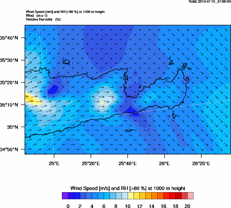 Graph 3: arw023.png - Wind Speed [m/s] and RH [>80%] at 1000 m height