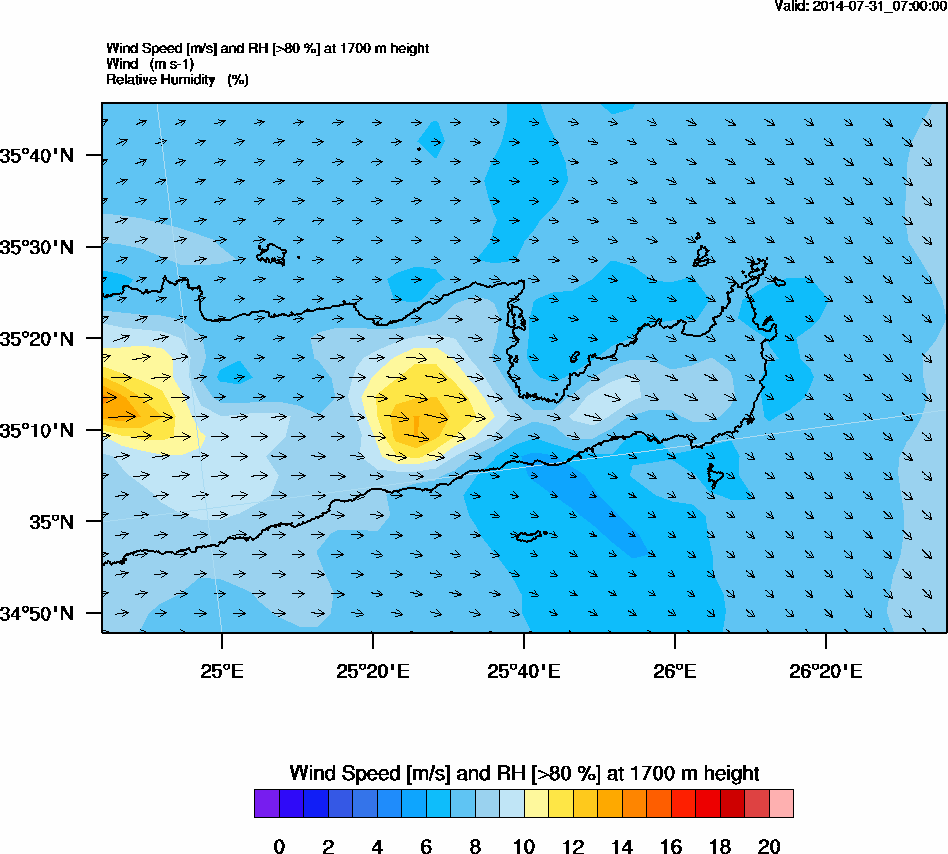 Graph 5: arw025.png - Wind Speed [m/s] and RH [>80%] at 1700 m height
