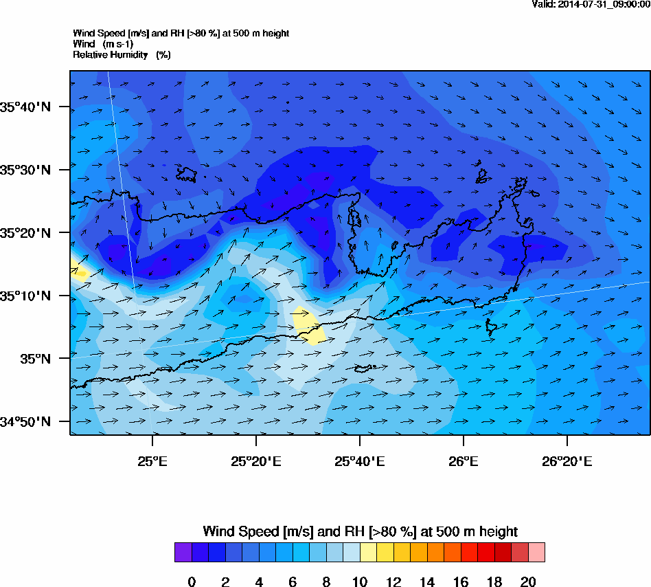 Graph 2: arw032.png - Wind Speed [m/s] and RH [>80%] at 500 m height