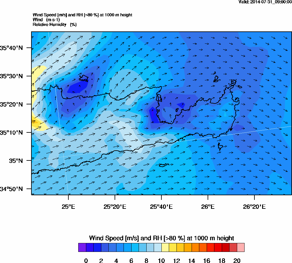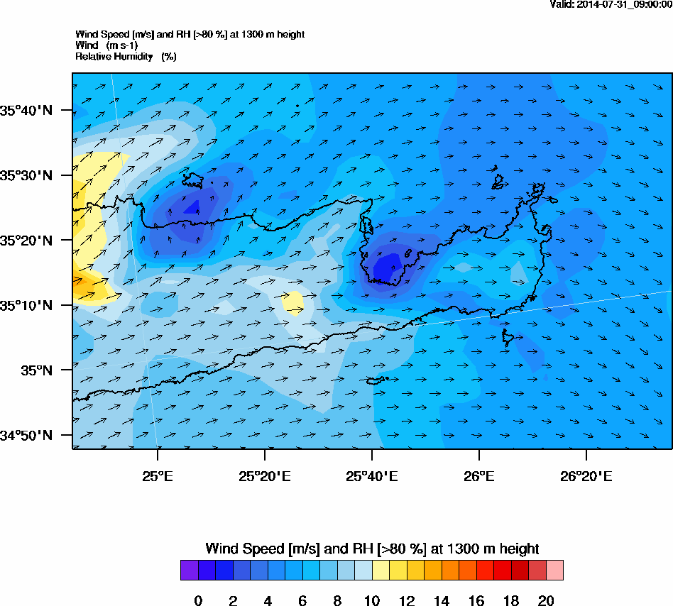 Graph 3: arw033.png - Wind Speed [m/s] and RH [>80%] at 1000 m height