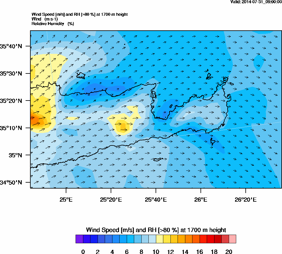 Graph 5: arw035.png - Wind Speed [m/s] and RH [>80%] at 1700 m height