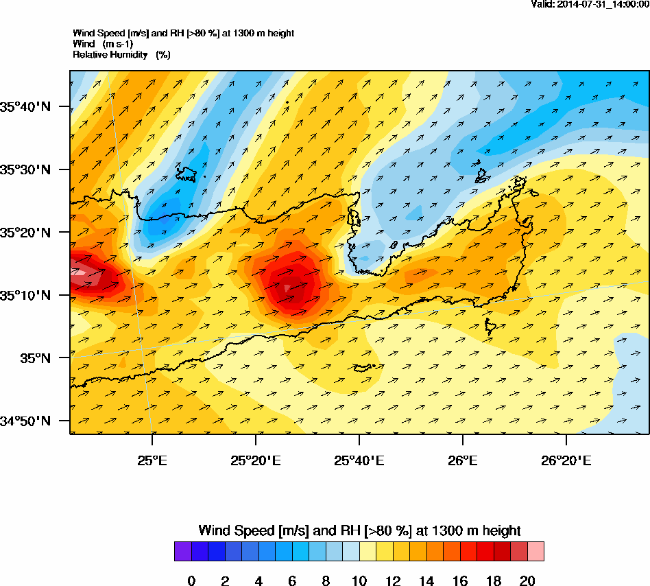 Graph 4: arw059.png - Wind Speed [m/s] and RH [>80%] at 1300 m height