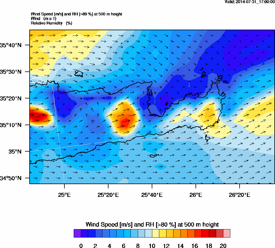 Graph 2: arw072.png - Wind Speed [m/s] and RH [>80%] at 500 m height