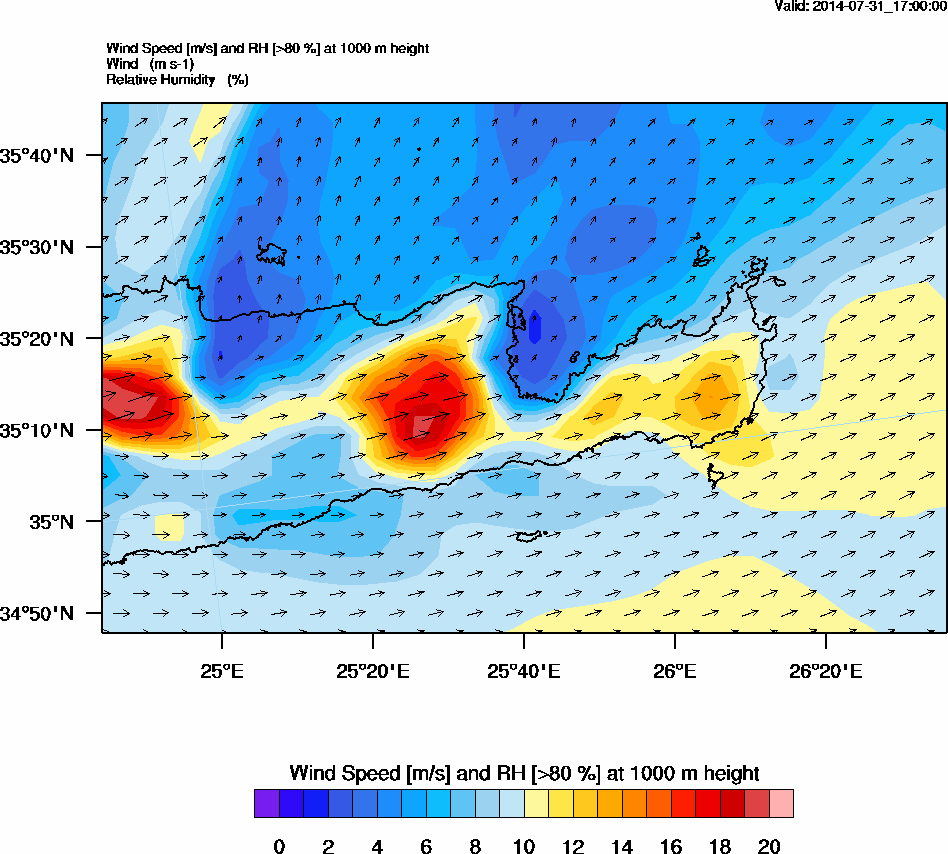 Graph 3: arw073.png - Wind Speed [m/s] and RH [>80%] at 1000 m height