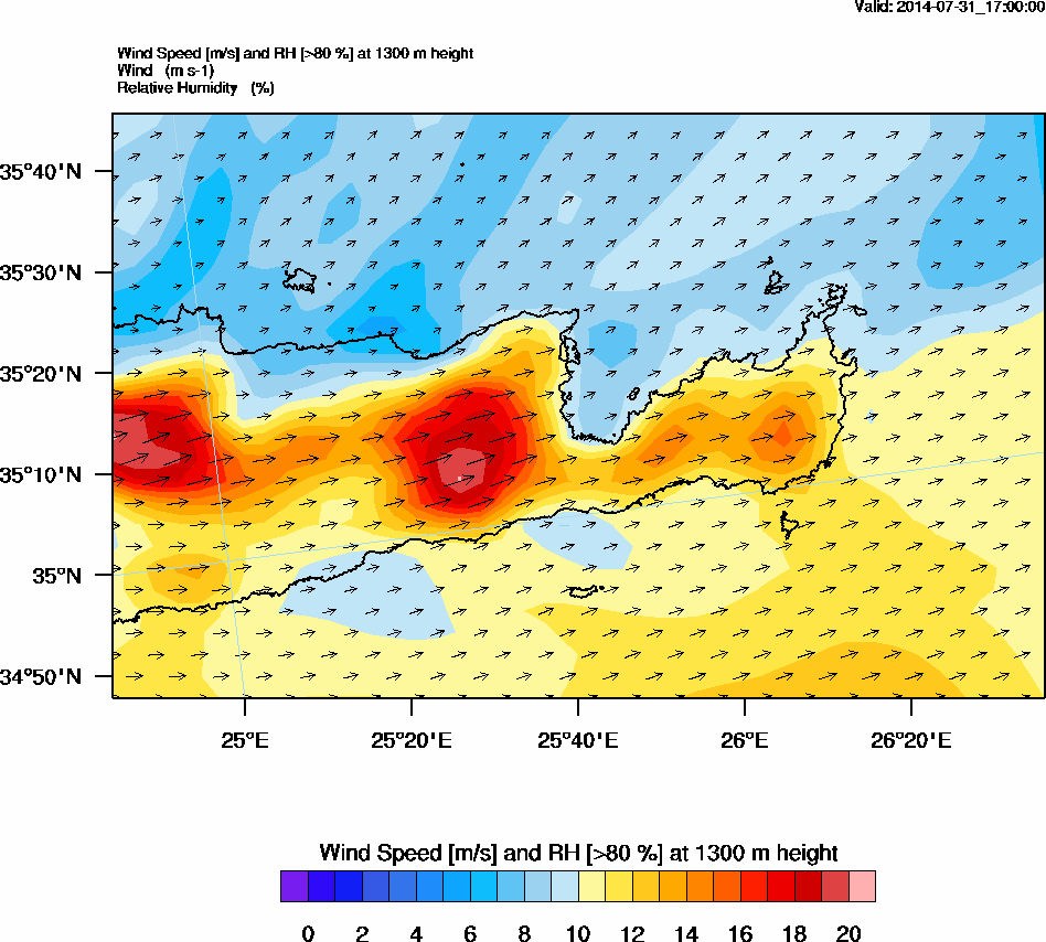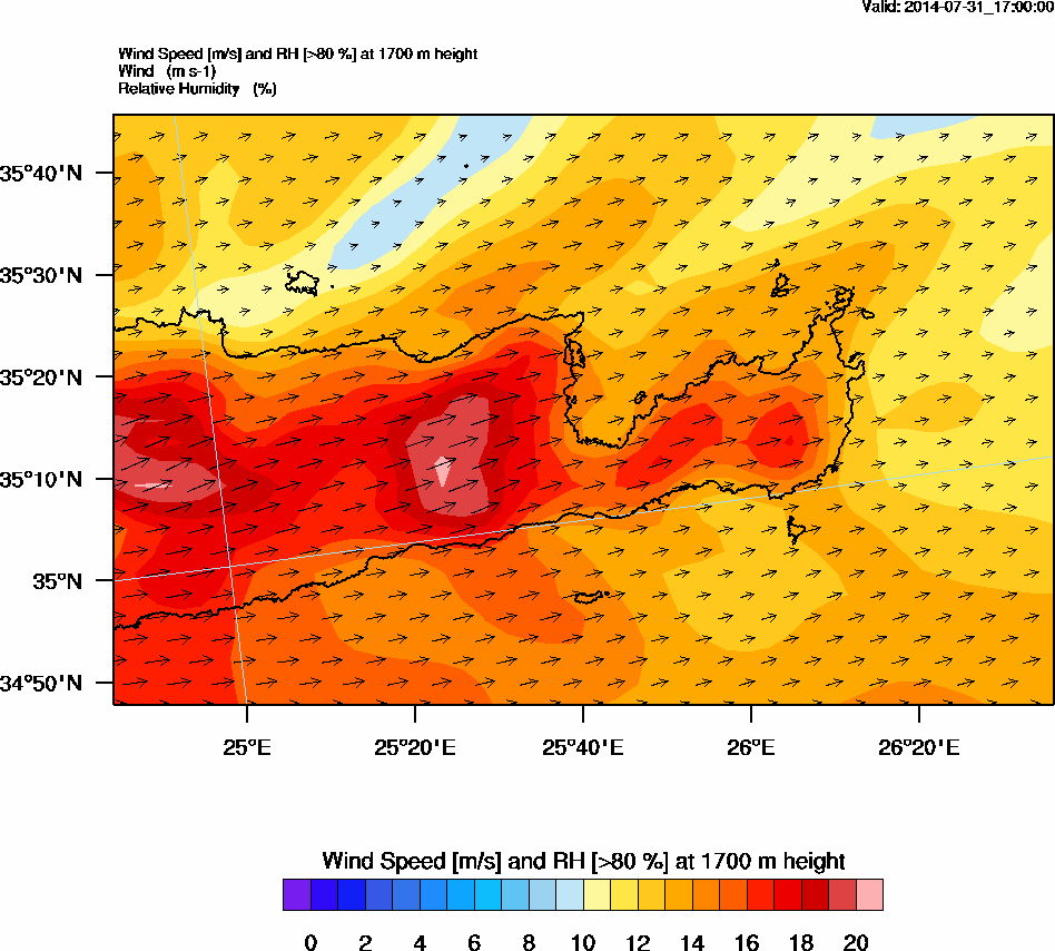 Graph 5: arw075.png - Wind Speed [m/s] and RH [>80%] at 1700 m height