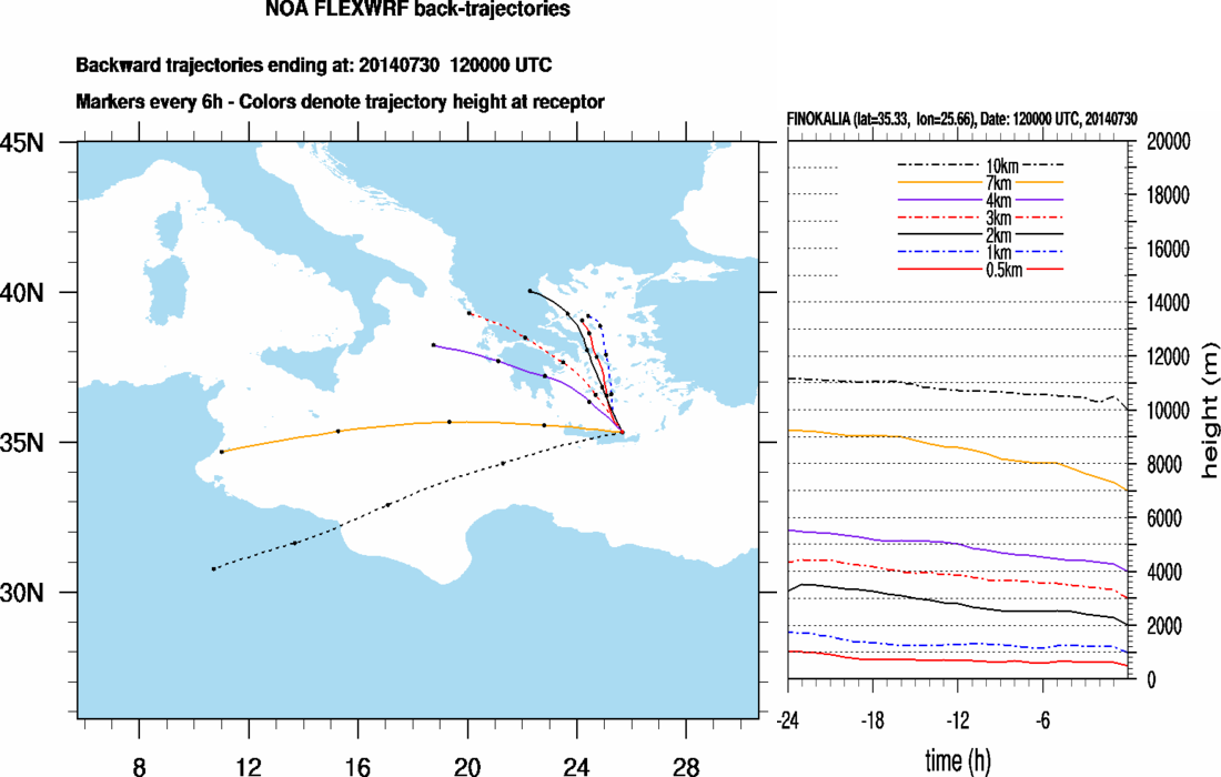 Graph 1: Backtrajectories forecast for Finokalia (+ 24 h)