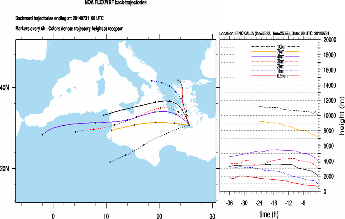 Graph 2: Backtrajectories forecast for Finokalia (+ 36 h)
