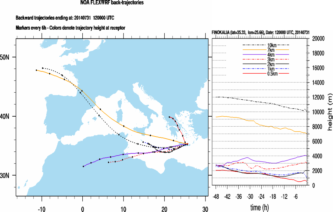 Graph 3: Backtrajectories forecast for Finokalia (+ 48 h)