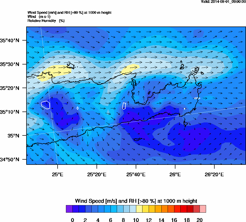Graph 3: arw033.png - Wind Speed [m/s] and RH [>80%] at 1000 m height