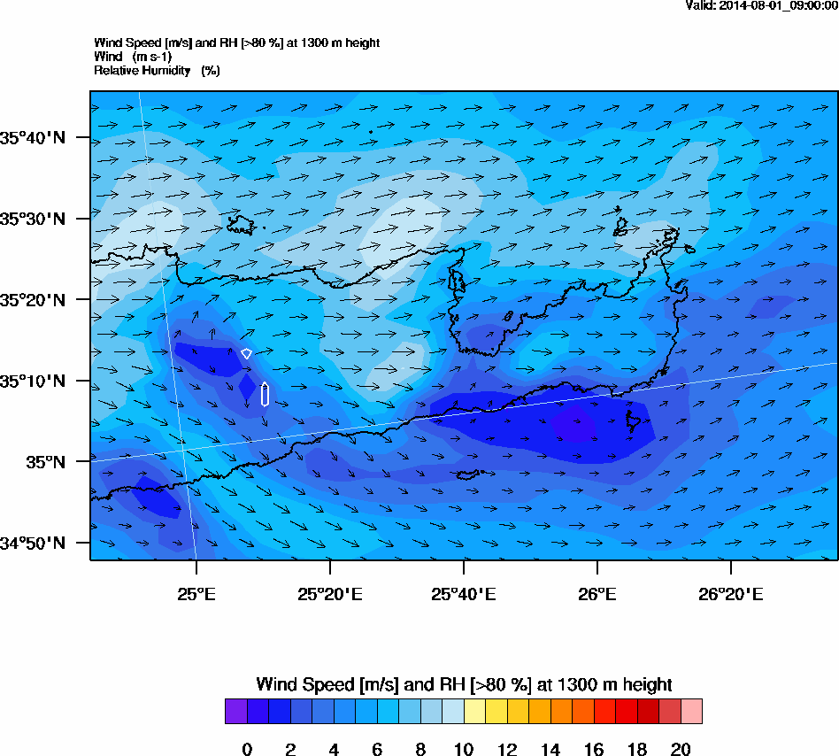 Graph 4: arw034.png - Wind Speed [m/s] and RH [>80%] at 1300 m height
