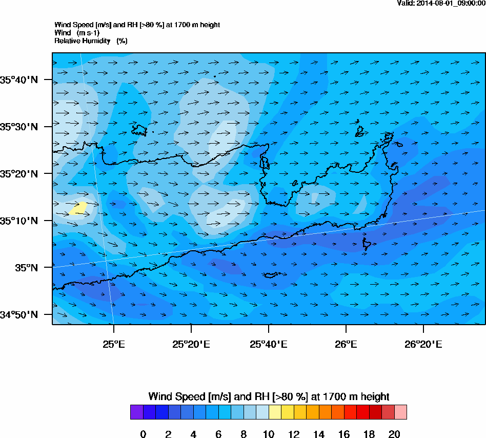 Graph 5: arw035.png - Wind Speed [m/s] and RH [>80%] at 1700 m height