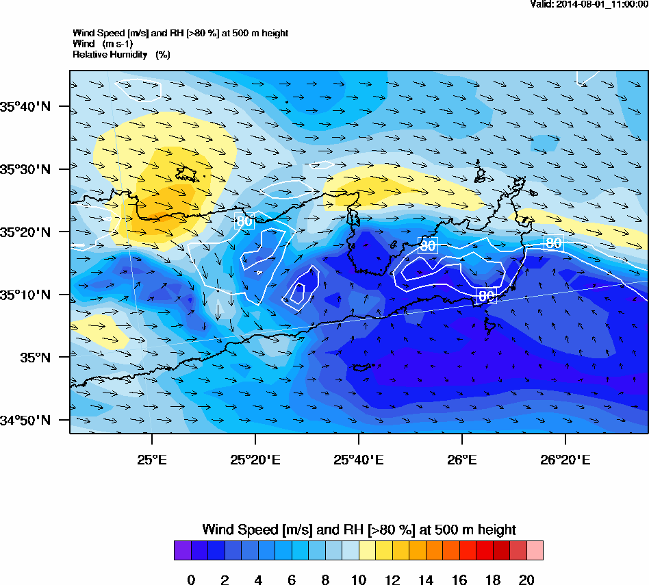 Graph 2: arw042.png - Wind Speed [m/s] and RH [>80%] at 500 m height