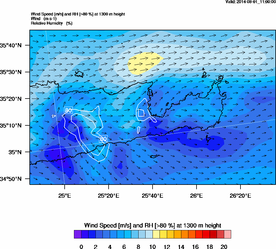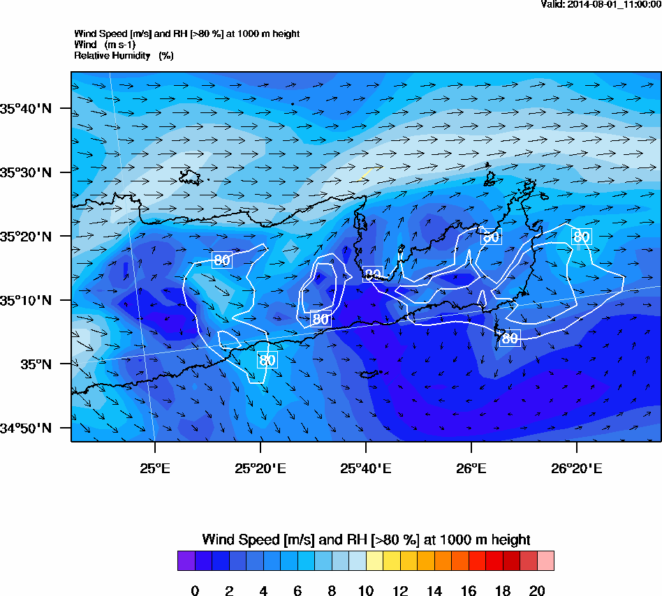 Graph 3: arw043.png - Wind Speed [m/s] and RH [>80%] at 1000 m height