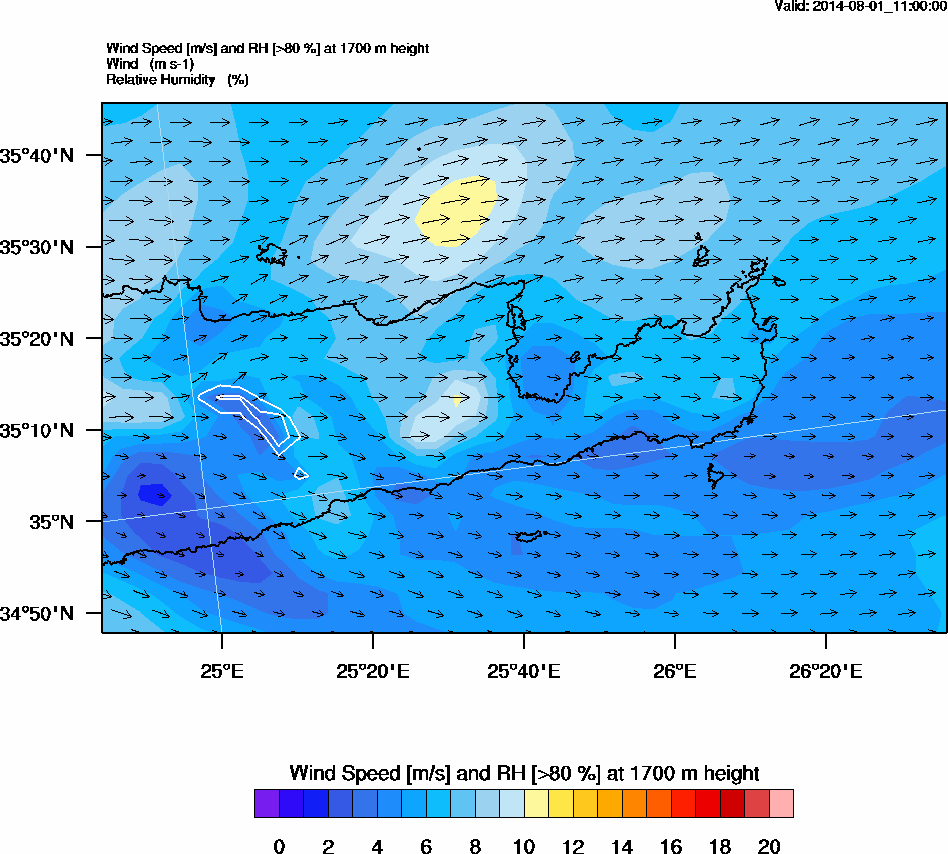 Graph 5: arw045.png - Wind Speed [m/s] and RH [>80%] at 1700 m height