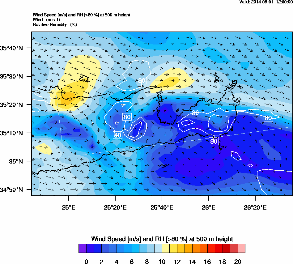 Graph 2: arw047.png - Wind Speed [m/s] and RH [>80%] at 500 m height