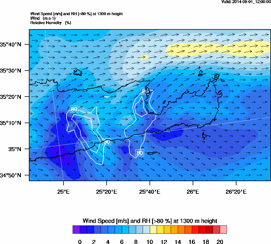 Graph 4: arw049.png - Wind Speed [m/s] and RH [>80%] at 1300 m height