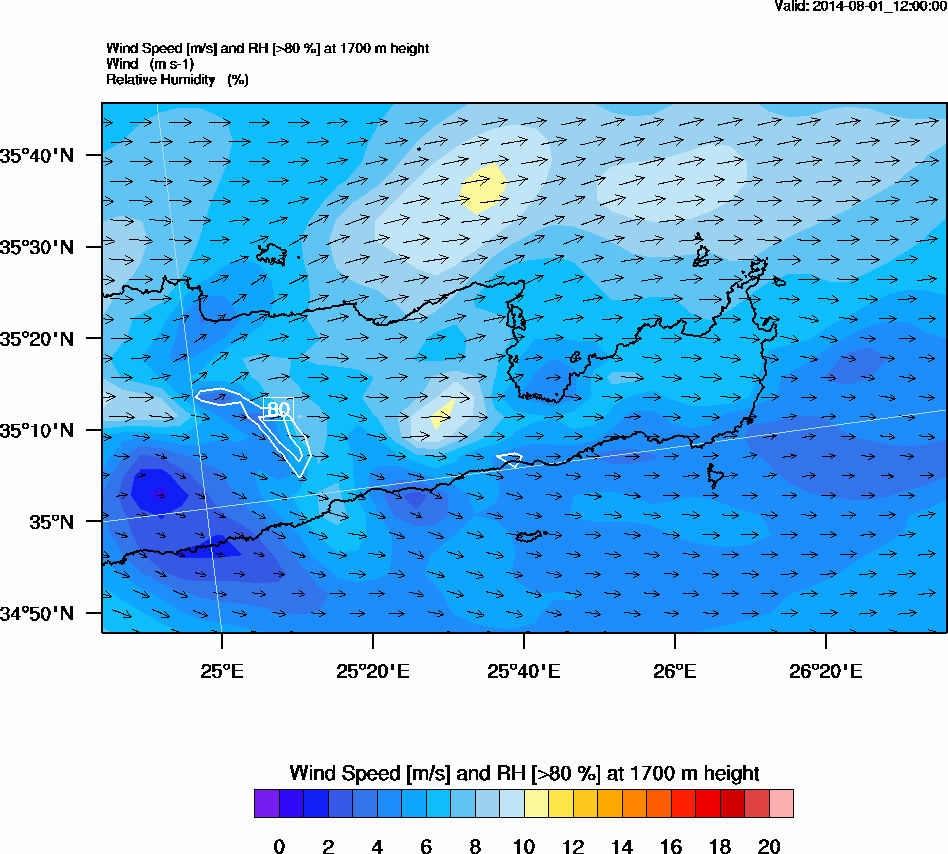 Graph 5: arw050.png - Wind Speed [m/s] and RH [>80%] at 1700 m height