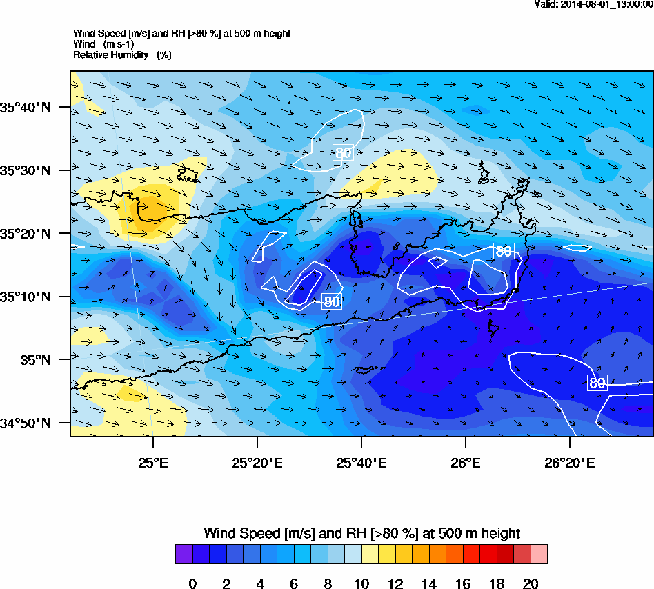Graph 2: arw052.png - Wind Speed [m/s] and RH [>80%] at 500 m height