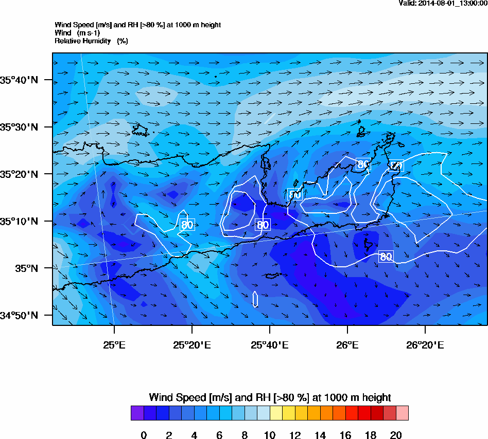 Graph 3: arw053.png - Wind Speed [m/s] and RH [>80%] at 1000 m height