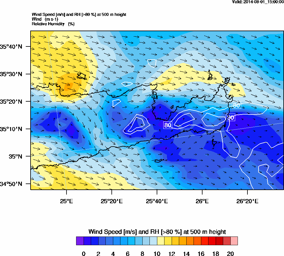 Graph 2: arw062.png - Wind Speed [m/s] and RH [>80%] at 500 m height