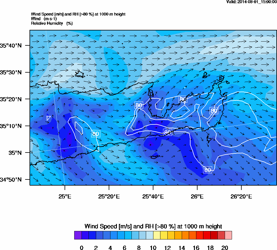Graph 3: arw063.png - Wind Speed [m/s] and RH [>80%] at 1000 m height