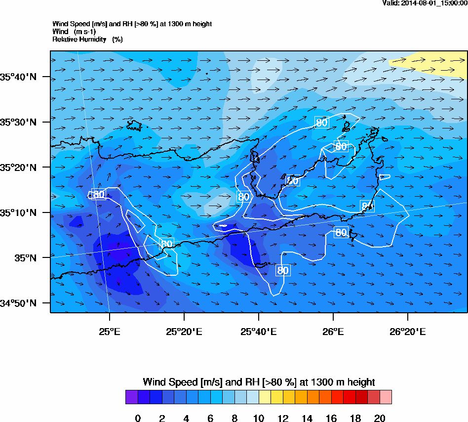 Graph 4: arw064.png - Wind Speed [m/s] and RH [>80%] at 1300 m height