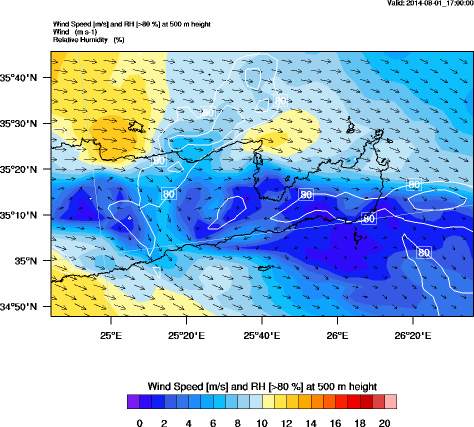 Graph 2: arw072.png - Wind Speed [m/s] and RH [>80%] at 500 m height